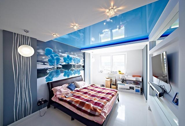 Натяжные потолки голубого цвета