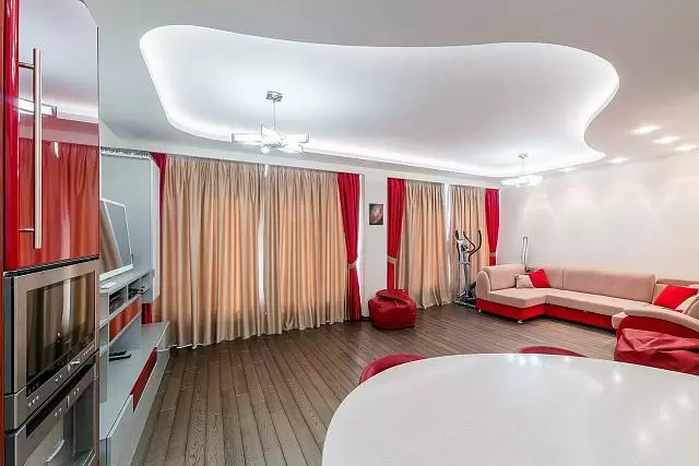 Зал, это то помещение, которое всегда выглядит представительно и потолок должен этому соответствовать. Установив в зале арт потолки, такие как, многоуровневый, потолок с фотопечатью, спайку, парящий, звёздное небо, double-vision, вы предадите изюминку помещению. Также стоит отметить классический белый матовый потолок, который сочетается с любым интерьером.