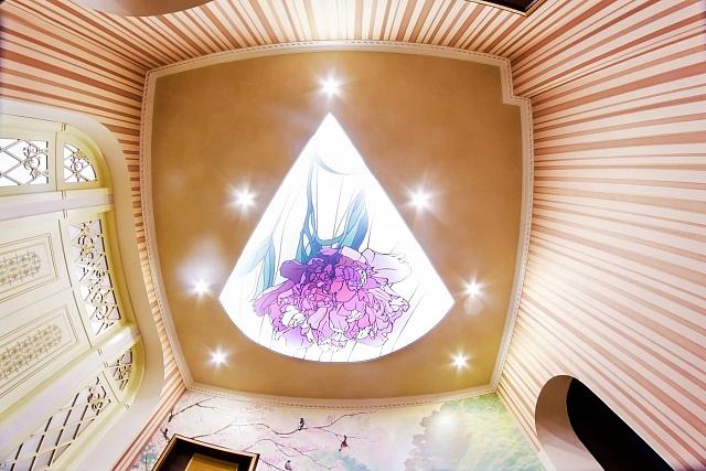 Для потолка в ванной комнате подойдёт любая фактура. Для любителей лоска рекомендуем установить глянцевый натяжной потолок. Его отражающая поверхность отлично сочетается с кафельной плиткой и за счёт этого пространство визуально расширяется. Также очень оригинально будет смотреться потолок с фотопечатью, особенно если он будет сочетаться с декором кафельной плитки.