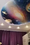 Если Вы хотите впечатлить Вашего ребёнка, то Вам отлично подойдут парящий потолок или потолок "звёздное небо". Также очень популярны потолки с фотопечатью. Для того чтобы зонировать пространство детской Вам подойдёт цветная спайка полотен или двухуровневый натяжной потолок. Для любителей классики и тех кто сомневается, подойдёт матовый натяжной потолок. Этот потолок выбирают 90% клиентов.