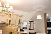 От всех других кухонное помещение отличается своим особым микроклиматом. На кухне чаще всего бывает повышенная влажность и перепады температуры. Очень важно, чтобы потолок на кухне был практичным и за ним можно было легко ухаживать. Возможные варианты потолков в кухне: гипсокартон, пластиковые панели, потолочная плитка, штукатурка и натяжные потолки. За потолком из гипсокартона и отштукатуренным очень сложно ухаживать их нельзя помыть в отличии от пластиковых панелей, плитки и натяжных. Но в случае затопления помещения ни панели, ни плитка не сможет препятствовать проникновению жидкости. Только натяжной потолок способен защитить Ваш дом от проникновения жидкости.