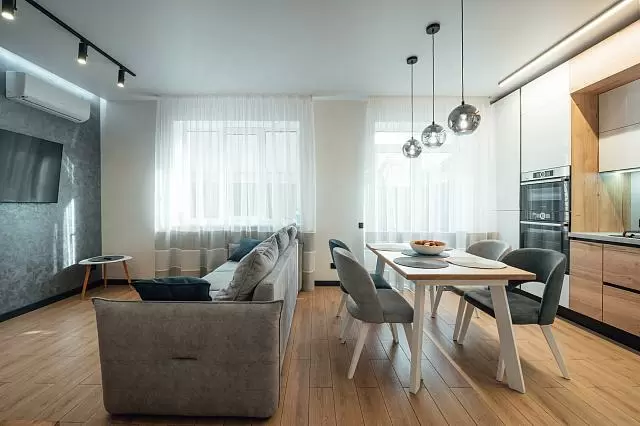 Натяжные потолки линейки EcoLine обладают специальной пропиткой, которая препятствует скоплению частичек жира и копоти. Также эти полотна обладают повышенной прочность и выдерживают до 100 кг на м2. В случае затопа Вы можете не переживать за ремонт и сохранность мебели с техникой. Плюс ко всему с помощью спайки натяжных полотен Вы сможете зонировать пространство помещения.