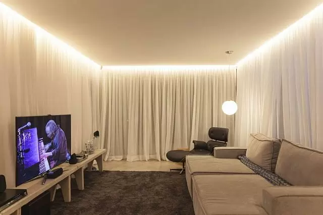 • Визуальное расширение пространства: Благодаря скрытому освещению потолок выглядит "парящим", что создает иллюзию увеличения пространства.