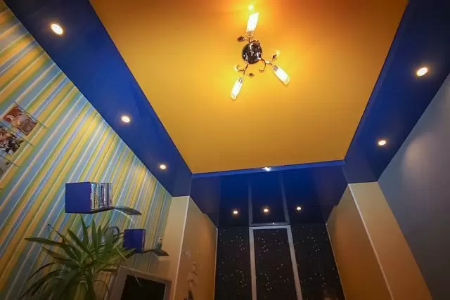 При установке точечных светильников, натяжной потолок опустится примерно на 4-6 см.