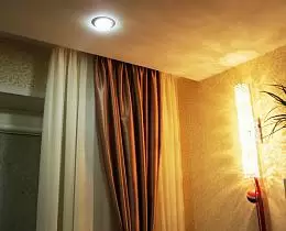 На опуск потолка может повлиять внутренняя часть цоколя лампы и размер закладной конструкции под осветительный прибор. В среднем опуск потолка при установке точечных светильников составляет 5-6 см.